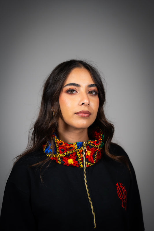 YOR® Black Phulkari Quarter Zip - Black